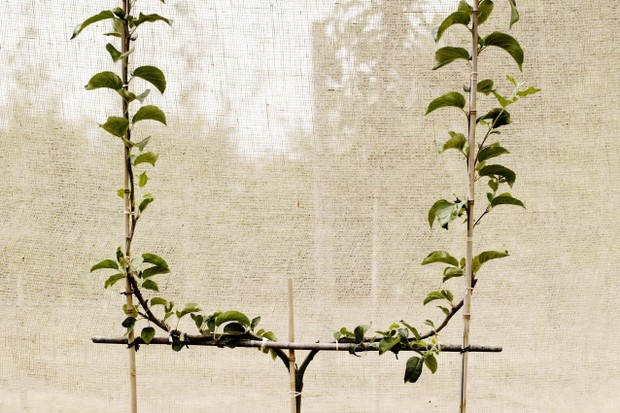 This shape takes a minimum of three years to form. “This is a good shape because you are breaking the vertical plane twice, each time halving the sap and slowing the whole tree down,”. “There is less chance of one limb taking over, or of the whole thing going out of control.”